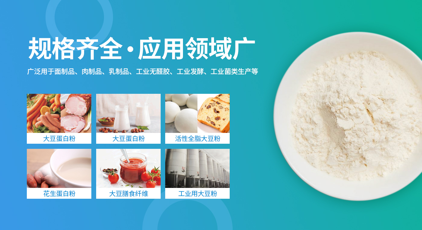 產品廣泛用于面制品、肉制品、乳制品、醫藥發酵、營養保健品生產中,為廣大食品生產企業提供優良蛋白補充劑,希望攜手合作,共謀發展。